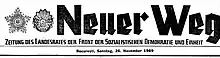 Primul număr din Neuer Weg a apărut duminică, 13 martie 1949, ca Organ al Comitetului Antifascist German din Republica Populară Romînă (Organ des Deutschen Antifaschistischen Komitees in der Rumänischen Volksrepublik) (1949-1953), organizație inițiată de PCR. După 1953 a devenit Organ al Sfaturilor populare (Organ der Volksräte). Din februarie 1968 a purtat subtitlul de „Ziar politic” (Politische Tageszeitung) iar din decembrie 1973 subtitlul de "Ziar al Consiliului Național al Frontului Democrației și Unității Socialiste" (Tageszeitung des Landesrates der Front der Sozialistischen Demokratie und Einheit).