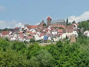 Parohia Biserica Sf. Nicolae, Neuleiningen, fotografiata din castel.