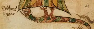 Nidhogg rozând rădăcina arborelui Yggdrasill , pictură dintr-un manuscris islandez.