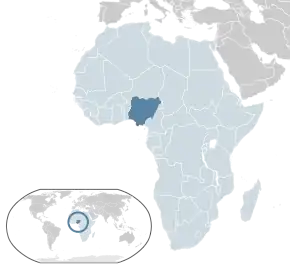 Nigeria, oficial Republica Federală Nigeria,[2] (pronunție românească: [nidʒerɪa]; Jamhuriyar Taraiyar Nijeriya (Hausa) Ọ̀hàńjíkọ̀ Ọ̀hànézè Naìjíríyà (Igbo) Orílẹ̀-èdè Olómìniira Aláàpapọ̀ Nàìjíríà (Yoruba)) este o țară situată în partea vestică-mijlocie a Africii, în Golful Guineii mărginită cu Benin la vest, Ciad și Camerun în est, și Niger la nord. Nigeria este țara cu cea mai mare populație a continentului african. Numele Nigeria a fost luat de la fluviul Niger, care străbate țara. Din puncte de vedere administrativ, Nigeria este o republică constituțională federativă, ce constă din 36 de state și Teritoriul Capitalei Federale,nivelului Abuja.