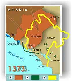 În 1373, a fost creată o alianță militară împotriva lui Nikola, care a inclus Banul Bosniei Tvrtko I Kotromanić, conducătorul principatului Zeta Đurađ I Balšić, Prințul Nikola Gorianski și regele Ludovic I al Ungariei. În același an, au luptat împotriva lui Nikola care a pierdut, astfel încât teritoriul condus de Nikola Altomanović a fost împărțit între prințul Lazar Hrebeljanović al Serbiei, principele Đurađ I Balšić al Zetăi și Banul Tvrtko I Kotromanić al Bosniei.