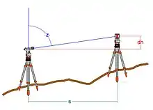 Nivelmentul trigonometric se bazează pe faptul că, știind altitudinea punctului de stație și panta terenului, putem determina Dh și apoi altitudinea punctului în care se află mira. Între punctele A și B se formează ipotenuza unui triunghi dreptunghic în care cunoaștem lungimea AB și unghiul de pantă α. Diferența de nivel dintre A și B este dată de formula: Dh = sin α × AB. Altitudinea punctului B este egală cu altitudinea punctului A plus Dh.