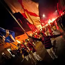 Ziua de naștere a lui William al III-lea cădea pe 4 noiembrie,[lower-alpha 2] și astfel pentru Whighii(d) ortodocși cele două zile au devenit o importantă dublă aniversare.[25] William a poruncit ca slujba de mulțumire pentru 5 noiembrie să fie modificată pentru a include mulțumiri pentru „fericita sosire” a lui și pentru „Mântuirea Bisericii și Națiunii noastre”.[26] În anii 1690 el a restabilit dominația protestantă în Irlanda, și ziua de 5, marcată ocazional prin bătutul clopotelor bisericilor și prin dineuri civice, a fost prin urmare eclipsată de sărbătorirea zilei lui de naștere. Începând cu secolul al XIX-lea, sărbătorirea zilei de 5 noiembrie a căpătat acolo o natură sectară. Sărbătorirea ei rămâne controversată în Irlanda de Nord, dar nu și în Scoția, unde în diferite orașe se aprind în continuare focuri de tabără.[27] În Anglia însă, fiind una din cele 49 de sărbători oficiale, pentru clasa conducătoare ziua de 5 noiembrie a rămas în plan secundar, fiind eclipsată de evenimente ca ziua de naștere a amiralului Edward Vernon(d), sau a lui John Wilkes, și în timpul regilor George al II-lea și George al III-lea, cu excepția Răscoalei Iacobite din 1745(d), ea a rămas mai degrabă „o distracție politicoasă decât o ocazie de mulțumiri vitriolice”.[28] Pentru oamenii de rând, însă, aniversarea era o ocazie de a promova dezordinea, un pretext pentru violență și dezmăț. La un momentat, din motive neclare, a apărut obiceiul de a arde o efigie a lui Guy Fawkes, în locul celei a papei. Treptat, Ziua Trădării cu Praf de Pușcă a devenit Ziua Guy Fawkes. În 1790 The Times relata cazuri de copii care „... cerșesc bani pentru Guy Faux”,[29] iar în descria cum „un pâlc de oameni fără ocupație ... cu o figurină hidoasă îmbrăcată ca un Guy Faux” au fost condamnați pentru cerșetorie și primire de bani și închiși ca „persoane fără ocupație și turbulente”.[30] Ziua de 5 a devenit o „o ocazie cu multe înțelesuri, plină de referiri încrucișate polivalente, care înseamnă de toate pentru toți”.[31] Răzmerițele oamenilor de rând au continuat, în Lewes fiind consemnate răscoale anuale, intimidarea „gospodarilor respectabili”[32] și rostogolirea pe străzi a unor butoaie cu smoală aprinse. În Guildford, bande de dezmățați care se autointitulau „guys” terorizau populația locală; acțiunile din acea zi erau concentrate mai mult pe reglări de conturi și scandal general, decât pe vreo reminiscență istorică.[33] Probleme similare au apărut și în Exeter, la început locul unor sărbători mai tradiționale. În 1831 a fost arsă efigia noului episcop de Exeter Henry Phillpotts(d), un Anglican High Church(d) și High Tory(d) care se opunea reformei parlamentare(d), și care era bănuit și de implicarea în „papistășism subversiv”. O interdicție locală a artificiilor în 1843 a fost ignorată în mare parte, iar tentativele autorităților de a suprima celebrările s-au soldat cu proteste violente și cu rănirea mai multor oameni ai legii.[34]