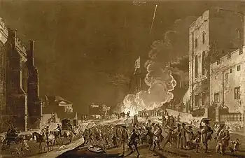 Noaptea Focurilor de Tabără, cum a fost cunoscută ocazional,[16] a căpătat o nouă fervoare în timpul evenimentelor care au avut loc în preludiul Interregnumului englez(d) . Deși regaliștii(d) le contestau interpretările, parlamentariștii(d) au început să descopere sau să se teamă de noi comploturi catolice. Într-o cuvântare în fața Camerei Comunelor la , Charles Herle(d) a susținut că papistași săpau tuneluri „de la Oxford, de la Roma, din Infern, până la Westminster, iar acolo să arunce în aer, dacă se poate, prea-bunele temelii ale familiilor voastre, libertățile și privilegiile lor”.[17] O expoziție ținută în 1647 la Lincoln’s Inn Fields(d) comemora „marea milă a lui Dumnezeu care a eliberat acest regat de infernalele viclenii ale papistașilor” și a inclus mingi de foc care ardeau în apă (simbolizând o asociație catolică cu „spiritele Infernului”) și cutii de foc, numeroasele rachete reprezentând „spiritele papistașe care vin de dedesubt” pentru a complota împotriva regelui. Erau prezente efigii ale lui Fawkes și ale papei, acesta din urmă reprezentat de Pluton, zeul roman al lumii subterane.[18]