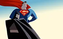![]() Artă stilizată bazată pe apariția lui Superman și Batman în serial. | |