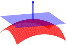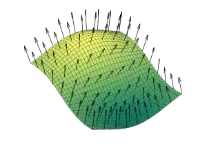 Dacă suprafața este dată sub formă implicită(d) ca un set de puncte care satisfac atunci o normală într-un punct de pe suprafață este dată de gradientul