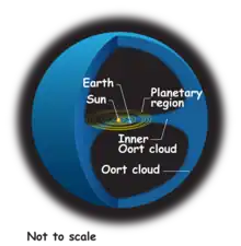 În articolul care în care anunțau descoperirea planetei pitice Sedna, Mike Brown și colegii săi au afirmat că ei observau primul corp din Norul lui Oort, norul ipotetic de comete care s-ar situa între circa 2.000 și 50.000 ua de Soare. Ei au observat că, spre deosebire de obiectele împrăștiate, cum este Eris, periheliul obiectului Sedna (la 76 ua) este prea distant pentru ca influența gravitațională a lui Neptun să fi jucat un rol în timpul evoluției Sednei.[24] Sedna fiind mult mai aproape de Soare decât se crezuse pentru obiectele din Norul lui Oort, iar înclinația sa fiind apropiată de aceea a planetelor și a Centurii Kuiper, autorii au considerat că Sedna era un „obiect al Norului lui Oort interior” (în engleză: «inner Oort cloud object»), situat pe discul plasat între Centura Kuiper și partea sferică a norului.[25][26]