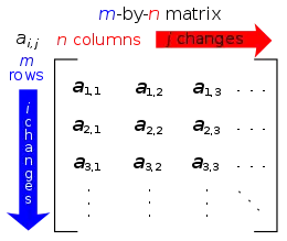Pentru a descrie tablouri de numere cu două sau mai multe dimensiuni se folosesc mai mulți indici. De exemplu, la o matrice (care este bidimensională, v. imaginea din dreapta) se folosesc doi indici: