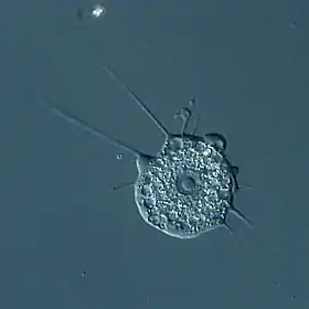 - Yoshida M, Nakayama T, Inouye I (ianuarie 2009). „Nuclearia thermophila sp. nov. (Nucleariidae), a new nucleariid species isolated from Yunoko Lake in Nikko (Japan)”. European journal of protistology. 45 (2): 147–155. doi:10.1016/j.ejop.2008.09.004. PMID 19157810.