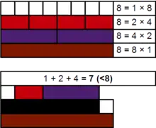 Demonstrație, cu rigla Cuisenaire, a deficienței numărului 8 | |