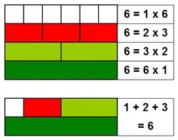 Demonstrație vizuală a faptului că numărul 6 este un număr semiperfect, dar și perfect. | |