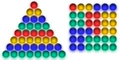 Numărul triunghiular și pătratic 36 prezentat ca număr triunghiular și ca număr pătratic | |