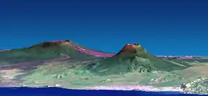 Nyamuragira (stânga) și Nyiragongo (dreapta).