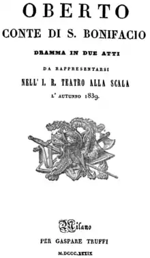 ![]() Pagina de titlu a libretului, Milano 1839 | |
