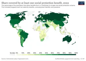 Până la sfârșitul anului 2022, prognoza arăta că 8,4% din populația lumii, sau până la 670 de milioane de oameni, ar putea trăi în continuare în sărăcie extremă. Acest regres cauzat de pandemia Covid-19 a șters efectiv aproximativ trei ani de progres în reducerea sărăciei[14], împingând încă 71 de milioane de oameni în sărăcie extremă[15]. În ciuda extinderii protecției sociale în timpul crizei COVID-19, peste 4 miliarde de oameni au rămas complet neprotejați. Multe dintre grupurile vulnerabile ale populației lumii, inclusiv tinerii și bătrânii, rămân neacoperite de programele statutare de protecție socială[14].