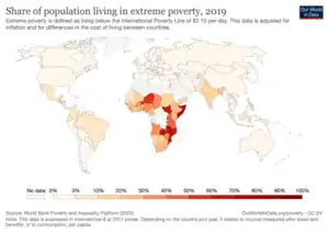 În 2020 s-a raportat că „la nivel global, proporția lucrătorilor care trăiesc în sărăcie extremă a scăzut la jumătate în ultimul deceniu: de la 14,3% în 2010 la 7,1% în 2019”[17].