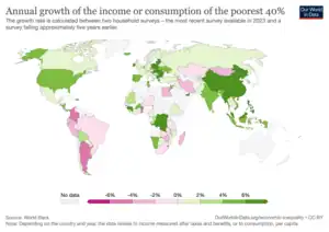 S-a înregistrat o creștere a veniturilor persoanelor mai sărace în perioada 2012–2017. Cu toate acestea, este obișnuit în multe țări ca „cei mai săraci 40% din populație să primească mai puțin de 25% din venitul total”[5]:12.