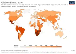 Inegalitatea există sub diferite forme, cum ar fi economice, bazate pe sex, dizabilități, rasă, inegalități sociale și diferite alte forme de discriminare[6]. Măsurarea inegalității în formele sale individuale este o componentă crucială pentru a reduce inegalitatea în interiorul și între țări. Coeficientul Gini este cea mai utilizată unitate de măsură a inegalității socio-economice, deoarece poate prezenta elocvent distribuția veniturilor și a bogăției în și între țări[7].
