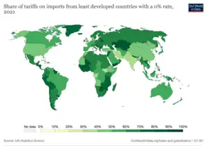 Această țintă are un singur indicator: indicatorul 10.a.1 reprezintă „Ponderea taxelor vamale aplicate importurilor din țările cel mai puțin dezvoltate și țările în curs de dezvoltare cu taxe vamale zero”[13].
