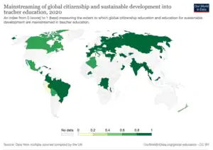 Indicatorul 13.3.1 reprezintă măsura în care țările integrează educația privind cetățenia globală (Global Citizenship Education - GCED) și educația privind dezvoltarea durabilă (Education for Sustainable Development - ESD) în sistemele și politicile educaționale[19]. Pentru a explica conceptul de „Educație pentru dezvoltare durabilă și cetățenie globală”, Institutul Național de Statistică din Regatul Unit (Office for National Statistics) încearcă să prezinte modul în care alegerile fiecăruia dintre noi influențează pe ceilalți și mediul înconjurător[20].