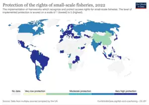 În 2022 s-a consemnat că gradul de aplicare a cadrelor care recunosc și protejează drepturile de acces pentru pescuitul la scară mică a fost cel mai ridicat, atingând un scor de 5 din 5. Cu toate acestea, acest scor ascunde numărul mic de țări care sunt clasificate[21].