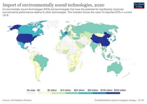 Comerțul total de tehnologii ecologice (Environmentally Sound Technologies) în 2020 a fost de 2.364 miliarde USD, o creștere cu 5% față de 2015[9].