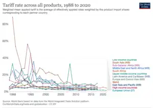 Această țintă are un singur indicator: indicatorul 17.10.1 reprezintă „Media ponderată a tarifelor vamale la nivel mondial”[7].