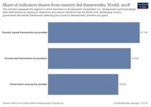Această țintă are un singur indicator: indicatorul 17.9.1 reprezintă „Gradul de utilizare de către furnizorii de cooperare pentru dezvoltare a cadrelor de rezultate și a instrumentelor de planificare stabilite la nivel național”[7]. Indicatorul evaluează gradul în care furnizorii de cooperare pentru dezvoltare (partenerii de dezvoltare) își proiectează intervențiile bazându-se pe obiective și indicatori de rezultate care sunt extrași din cadrele de rezultate stbilite de guvern din țările în curs de dezvoltare care reflectă prioritățile și obiectivele de dezvoltare ale țării[7].