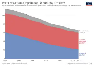 Se estimează că poluarea aerului din locuință este responsabilă de jumătate din decesele cauzate de pneumonie în rândul copiilor sub cinci ani[11]:6.