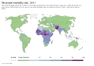 Conform statisticilor, la nivel global, „2,4 milioane de copii au murit în prima lună de viață în 2019 – aproximativ 6.700 de decese neonatale în fiecare zi – aproximativ o treime din toate decesele neonatale au avut loc în prima zi după naștere și aproape de trei sferturi apar în prima săptămână de viață”[6]. Lipsa accesului la asistență medicală de calitate este unul dintre factorii majori. Mortalitatea neonatală a fost cea mai mare în Africa Subsahariană și Asia de Sud, care au înregistrat 27 și, respectiv, 25 de decese la 1.000 de născuți vii, în 2019[6][7].