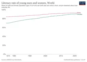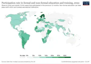 S-au înregistrat progrese majore în ceea ce privește accesul la educație, în special la nivel de școală primară, atât pentru băieți, cât și pentru fete. În ceea ce privește progresul înregistrat, participarea globală la învățământul terțiar a atins 224 de milioane în 2018, echivalentul unei rate brute de înscriere de 38%[5]:236.