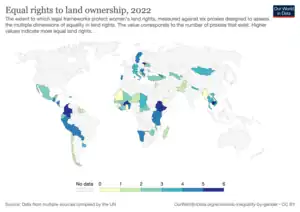 - indicatorul 5.a.2: „Ponderea țărilor în care cadrul legal (inclusiv dreptul cutumiar) garantează femeilor drepturi egale de proprietate și/sau control asupra pământului”.