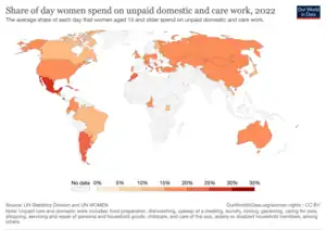 Această țintă are un singur indicator: Indicatorul 5.4.1 este „Ponderea de timp petrecut în activități casnice și de îngrijire neremunerate, după sex, vârstă și locație”[9]. Îngrijirea neremunerată și activitățile casnice includ pregătitul mesei și curățenia, aprovizionarea cu apă și lemne de foc sau îngrijirea copiilor și a persoanelor în vârstă[16]:6. Datele din 2020 au arătat că „femeile petrec de trei ori mai mult timp decât bărbații în activități casnice sau de îngrijire neremunerate”[17]:8.