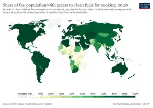 Accesul la energie electrică a crescut de la 73% în 1998, la 87% în 2015, la 90% în 2020 și la 91% în 2021, dar aproximativ 675 de milioane de oameni, în principal din țările cel mai puțin dezvoltate și din Africa subsahariană, rămân fără acces la electricitate[5]. În 2021, 71% din populația globală a avut acces la combustibili și tehnologii curate pentru gătit, în creștere față de 64% în 2015. Regiunea cu cele mai scăzute rate de acces a fost Africa subsahariană, unde progresul către gătit curat nu a reușit să țină pasul cu creșterea populației, lăsând un total de 0,9 miliarde de oameni fără acces în 2021[5].