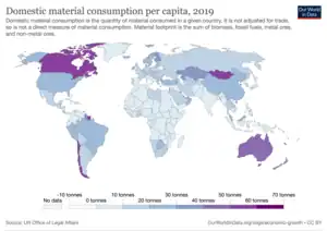 Consumul intern de materiale per locuitor a crescut cu 11% din 2010 până în 2017, ajungând la 12,17 tone, iar consumul intern de materiale pe unitatea de PIB a stagnat între 2010 și 2017, rămânând la o valoare de 1,16 kg[11].