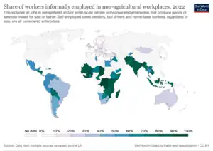 Locurile de muncă aflate sub incidența ocupării informale de locuri de muncă non-agricole includ: întreprinderi private neînregistrate și/sau la scară mică, angajate în producția de bunuri sau servicii destinate vânzării sau trocului, vânzători stradali independenți, șoferi de taxi și lucrători la domiciliu, indiferent de dimensiune[11].