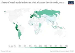 Potrivit unui raport de progres al ONU din 2020, „doar 22% din industriile la scară mică din Africa subsahariană au primit împrumuturi sau linii de credit, comparativ cu 48% în America Latină și Caraibe”[3].