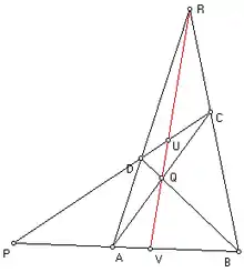 În geometria proiectivă diviziunea armonică este o operație ternară pe trei puncte. În diagramă, punctele A, B și P determină punctul V, conjugatul armonic al P față de A și B. Punctul R și linia prin P pot fi selectate în mod arbitrar, determinând C și D. Desenarea AC și BD determină intersecția Q, iar RQ determină apoi V.