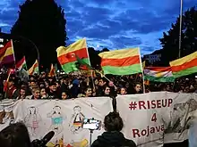 Mazlum Abdi, comandantul suprem al FDS, a declarat că este dispus la o alianță cu guvernul sirian pentru salvarea de la genocid a populației kurde din nordul Siriei.[176]