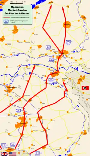 - GARDEN: forțele terestre ale Armatei a 2-a britanice în frunte cu Corpul al 30-lea trebuiau să atace spre nord sub comanda generalului locotenent Brian Horrocks.
