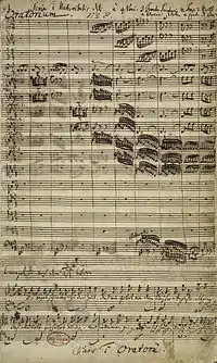 Prima pagină din prima parte a Oratoriului de Crăciun, în manuscrisul lui Bach