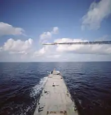 GQM-163A Coyote zboară deasupra navei de observare a Marinei americane în timpul unui test de rutină.