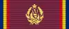 - clasa a IV-a - o stea de bronz argintat; era purtată agățată de o panglică roșie cu dungi laterale tricolore pe partea stângă a pieptului.