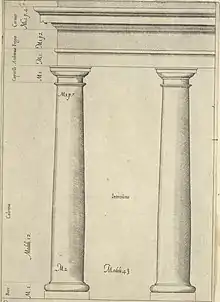 După interpretarea lui Vitruvius a lui Serlio (care nu oferă nicio indicație asupra capitalului coloanei), în ordinul toscan coloana avea o bază mai simplă - circulară, mai degrabă decât pătrată ca în celelalte ordine, unde Vitruvius era urmărit, iar coloana era necanelată, în timp ce atât capitalul cât și antablamentul erau nedecorate. Proporția modulară a coloanei a fost 1:7 la Vitruvius, iar în ilustrația lui Palladio pentru comentariul lui Daniele Barbaro despre Vitruvius), în Cinque ordini d'architettura (1562) al lui Vignola și în I quattro libri dell'architettura al lui Palladio (1570).[4] Numai Serlio oferă o proporție mai mare de 1:6.