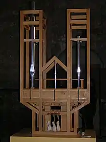 Orga este amplasată în transeptul drept al bisericii Burchardi, iar suflătoarele (mecanismul care pompează aerul în țevile orgii) în cel stâng. Între ianuarie și mai 2005, era compusă din doar șase țevi. Întrucât instrumentul scoate sunete încontinuu, el este amplasat în interiorul unui cub de sticlă acrilică, pentru a reduce emisiunile fonice.