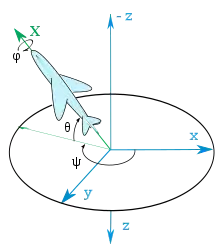 - en Jack B. Kuipers (). „Figure 4.7: Aircraft Euler angle sequence”. Quaternions and Rotation Sequences: A Primer with Applications to Orbits, Aerospace, and Virtual Reality. Princeton University Press. p. 85. ISBN 0-691-10298-8.