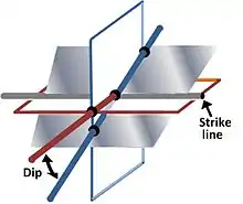 - en Rowland, Stephen Mark; Duebendorfer, Ernest M.; Schiefelbein, Ilsa M. (). „Attitudes of lines and planes”. Structural Analysis and Synthesis: A Laboratory Course in Structural Geology (ed. 3rd). Wiley-Blackwell. p. 1 ff. ISBN 978-1-4051-1652-7.