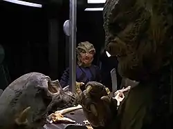 Pe planeta în care echipajul Voyager a fost mai devreme, profesorul Gegen și asistentul său Veer, doi paleontologi ai unei specii sauriene care a cucerit spațiul cosmic, cunoscută sub numele de Voth, descoperă rămășițele scheletice ale unui om, cel mai probabil ale lt. Hogan. Cei doi sunt fascinați de asemănarea genomului său cu propria lor specie, iar Gegen sugerează că acest lucru susține foarte controversata teorie a originii îndepărtate, care spune că rase Voth își are originea de pe o planetă foarte îndepărtată și nu din zona actuală a spațiului în care au pus bazele unui imperiu. Dovezi ale teoriei au fost căutate și de alți oameni de știință Voth, dar teoria este considerată eretică și a dus deseori la exilul lor.