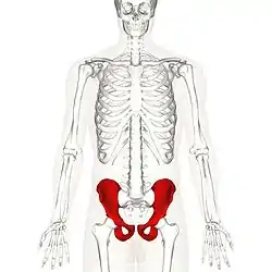 ![]() Poziția oaselor șoldului (prezentată cu roșu) | |