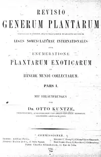În continuare, între 1891 și 1898, savantul a publicat opera sa în trei volume cea mai cunoscută, Revisio Generum plantarum. Publicația a fost un șoc pentru botanică, fiindcă Kuntze revizuise în acest tratat aproape în întregime taxonomia plantelor și nomenclatura botanică (referitor reviziei din 1867 în Codul de Paris, asociat școlii de taxonomie a lui Carl von Linné din 1753).[16] Declarațiile lui au fost parțial sărbătorite revoluție a taxonomiei, dar în majoritate respinse sau ignorate în mod deliberat. Ideile înnoitoare privind nomenclatura botanică a provocat o ruptură. Dintr-o dată au existat două versiuni ale acestei nomenclaturi, predecesorul codului internațional al nomenclaturii pentru alge, ciuperci și plante. Acest conflict a ajuns la un cap la al doilea Congres Internațional de Botanică din 1905.[17]